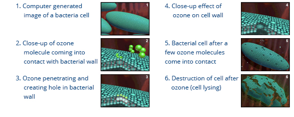 - Ozone destruction process enables highest ozone levels and hence 99.9% bacteria kill rates.